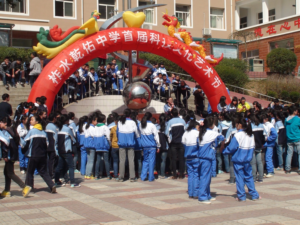 这一次首届艺术大赛是多么的有吸引力啊,这么多学生一瞬间全都聚集到一块儿去了,这是为什么呢,原来是他们在举行唱歌大赛啊。看,这一龙一凤,不正圆了我们的梦吗。台上有一个学生正在唱出他的梦想呢,真是一个温馨的场面啊,希望这会是我九年级的留念。