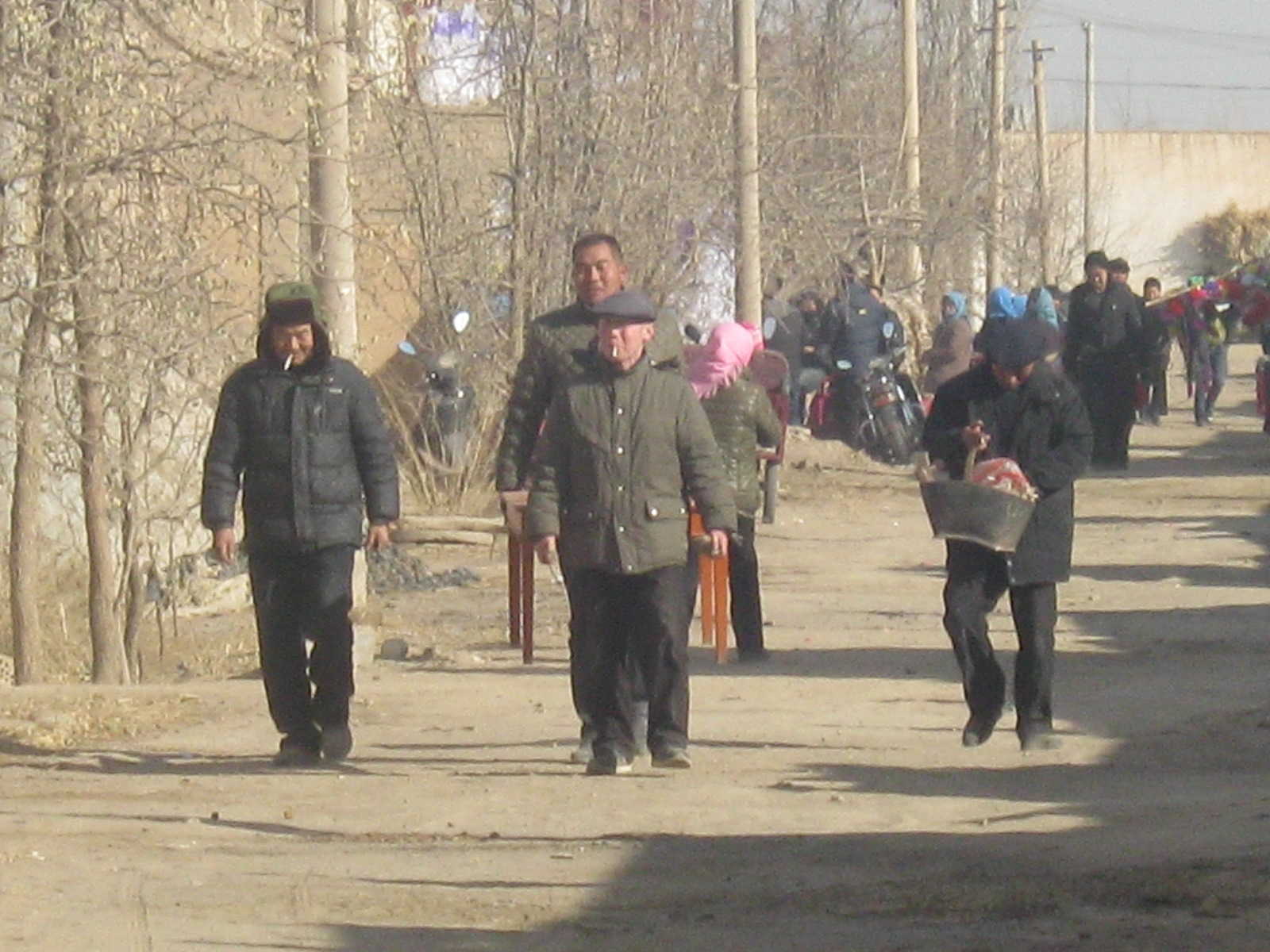 之后开始了最重要的一个环节——迎大斋。第一个应该是大女儿,要在距离村子二公里外的路上等待迎斋人的到来。据老人们讲,这个距离越长证明这个女儿越孝顺,其次是二女儿,依次类推。如果没有女儿,就从侄女儿从大到小开始迎斋。