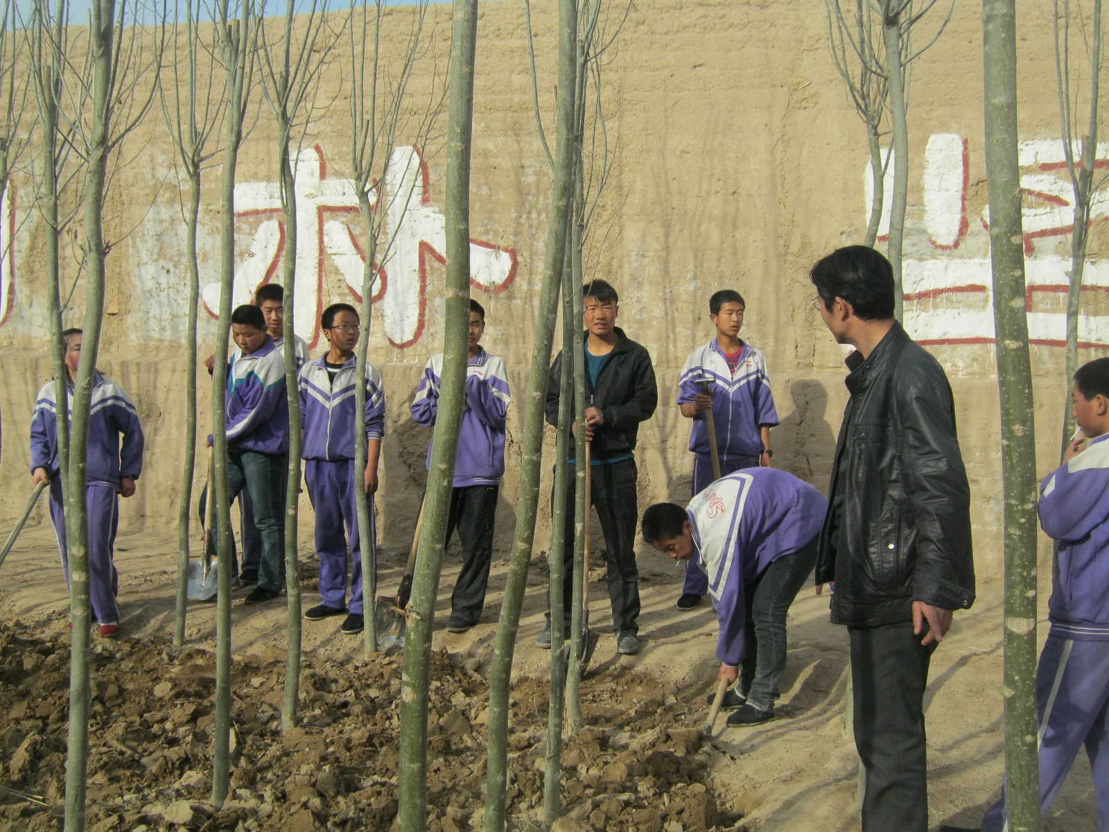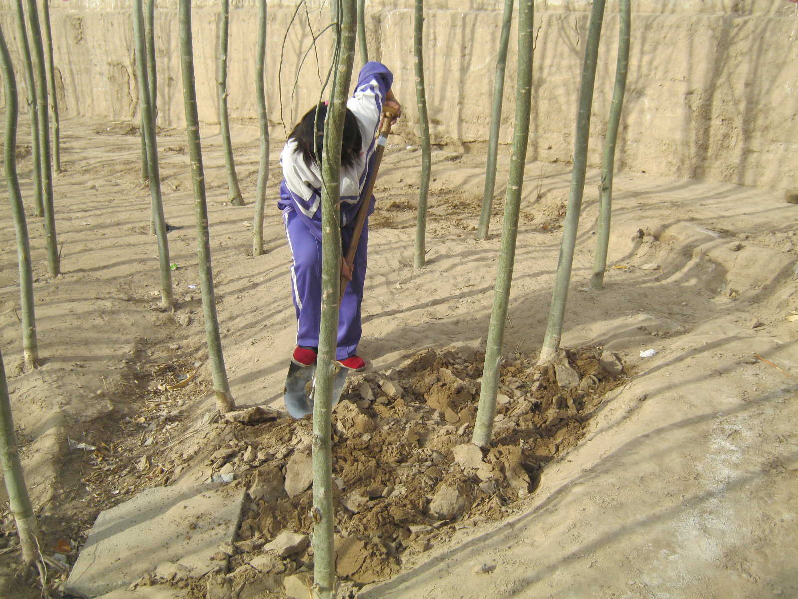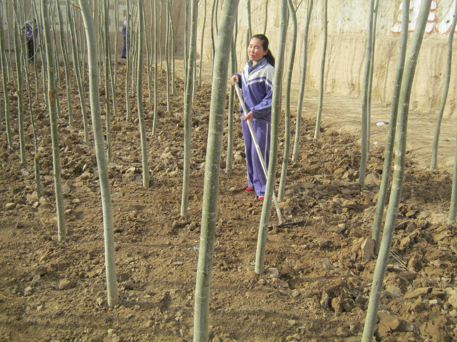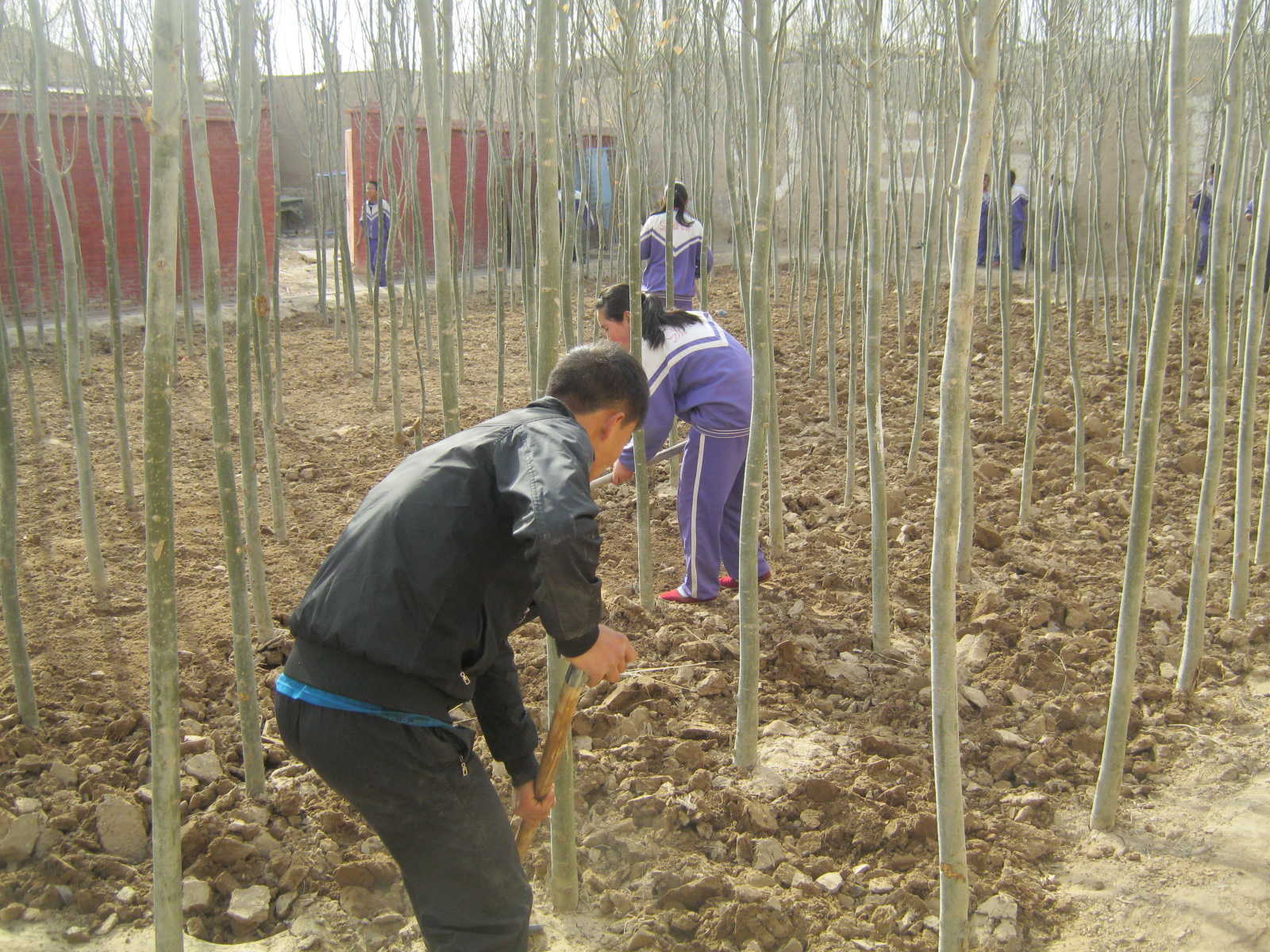 杨树林里一把把铁锹上下飞舞,同学们个个热情高涨,干劲十足。树林里传来了"咔嚓咔嚓"的铁锹声和"吭唷吭唷"的劳动号子,合奏成了一首动听的劳动"交响曲",树林里呈现出一派生龙活虎的场面。