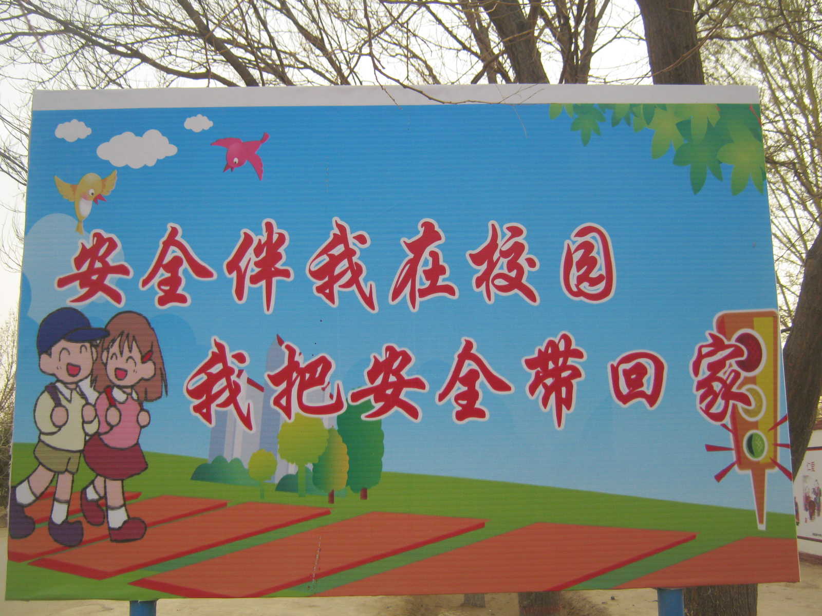 学校是我们每天生活、学习的地方,每天大约三分之二的时间是在学校里度过的,校园的安全隐患直接关系到我们的生命安全。本学期开学,我们学校加大了校园安全管理力度,使校园安全隐患降到最低水平。 "高高兴兴上学来,平平安安回家去",我们应做到"安全看我的、危险远离我。"