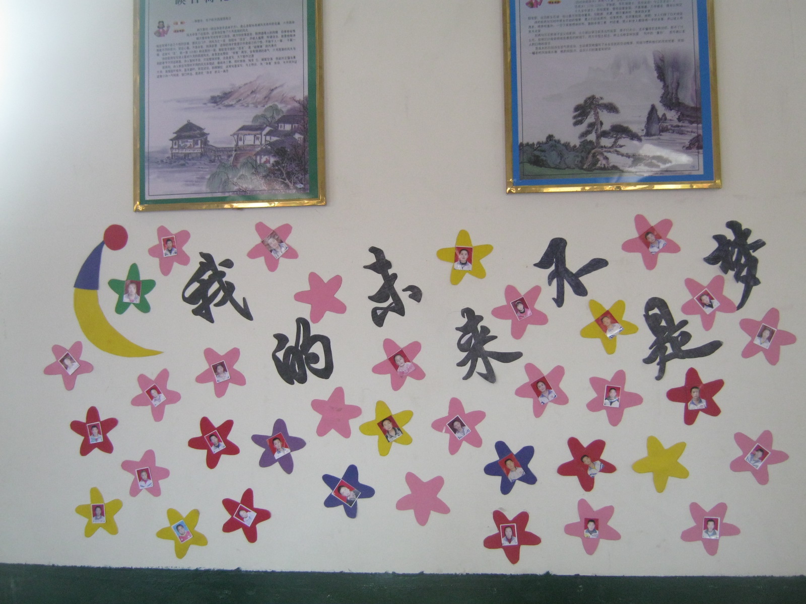 这里是我们立志的地方。每一个五角星里,对应着我们每一个人的头像。我的未来不是梦,我们要努力学习,锐意进取,不怕困难,知难而上,用我们的实际行动,实现我们的梦想!