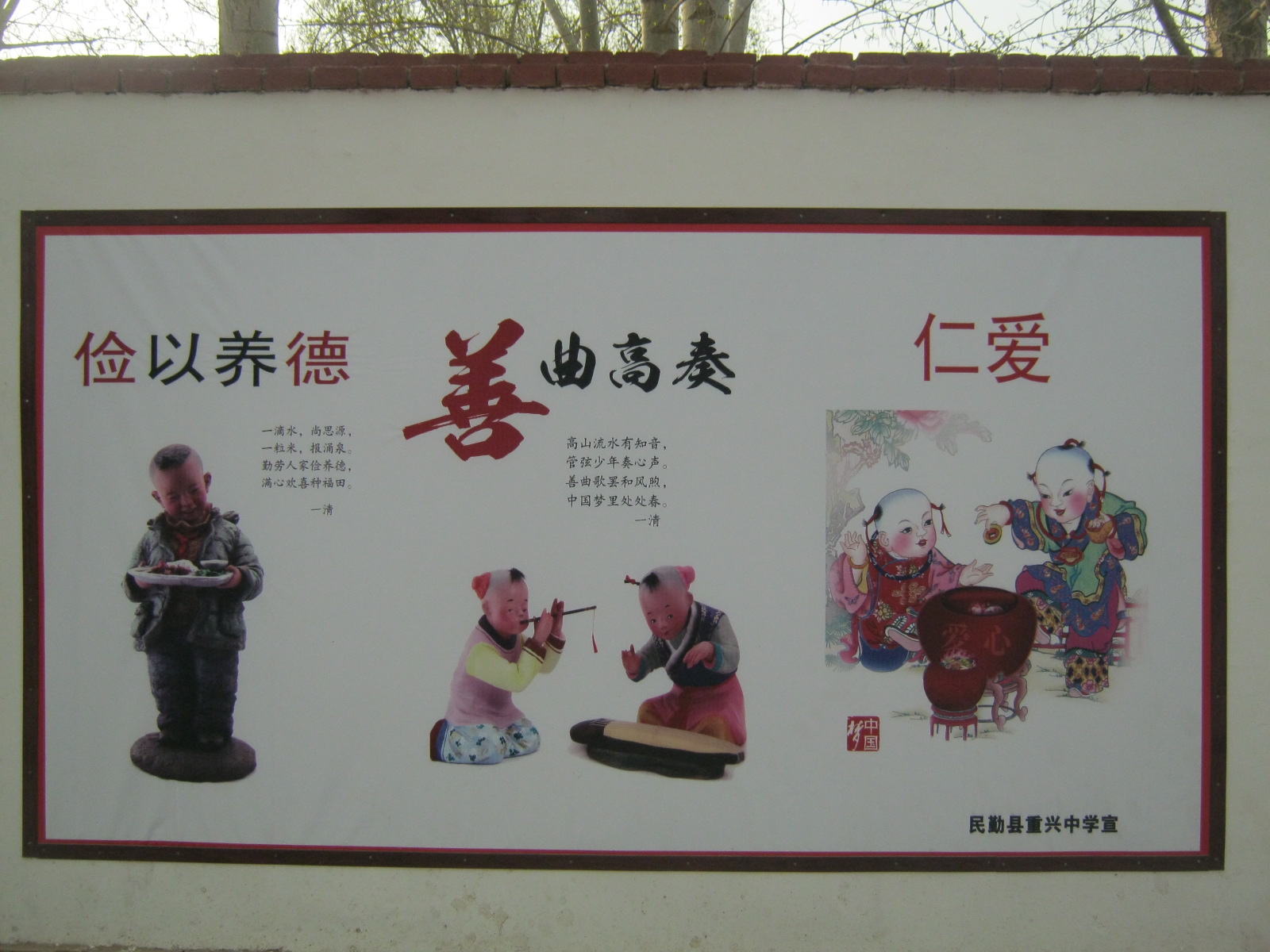 开学了,校园给我们耳目一新的感觉。校园的文化气息浓厚了,校墙上张贴着的画面无不包含着中华文化的元素。这是社会主义核心价值观:富强、民主、文明、和谐;自由、平等、公正、法治;爱国、敬业、诚信、友善。
