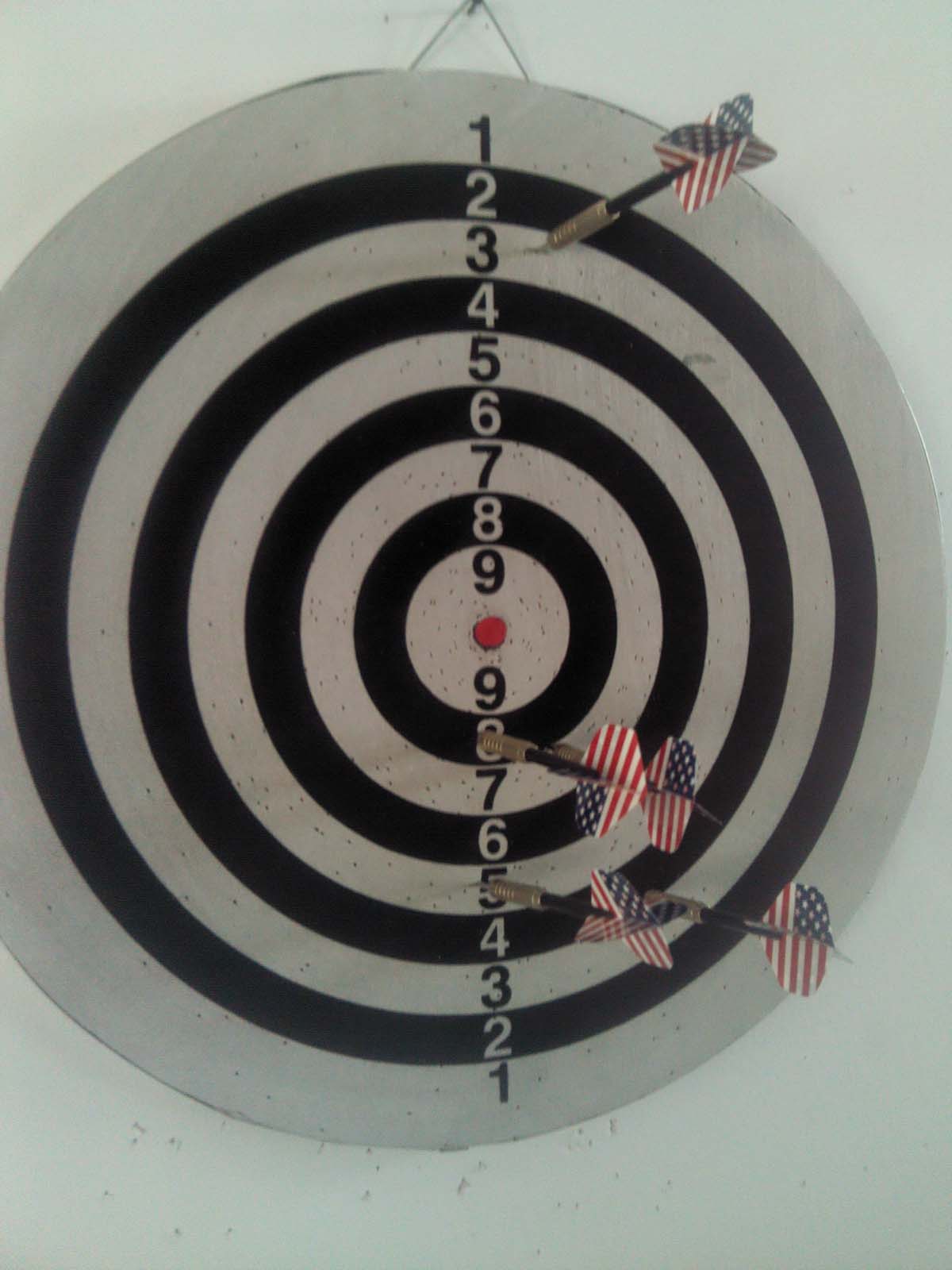在我小的时候就特别喜欢看武打片电视,大侠们投射极准的飞镖更是让我着迷。自小就有个梦想,能练就一身武功,能打得一手好暗器。今年看到哥哥家有一个镖盘,我的眼睛就像冒出火一样,费了好大劲终于要回了家。