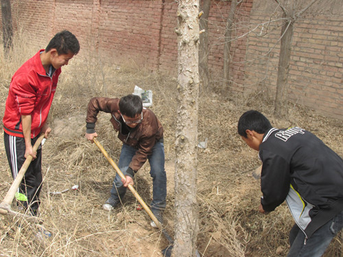 今天我们要劳动了,学校操场东边有一排已经死了的树木,今天我们要把这些枯木都给挖掉。