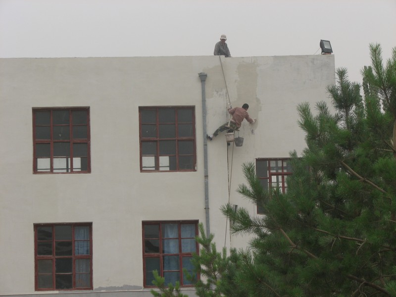 在他们的辛苦工作下,墙面都变得平滑干净.