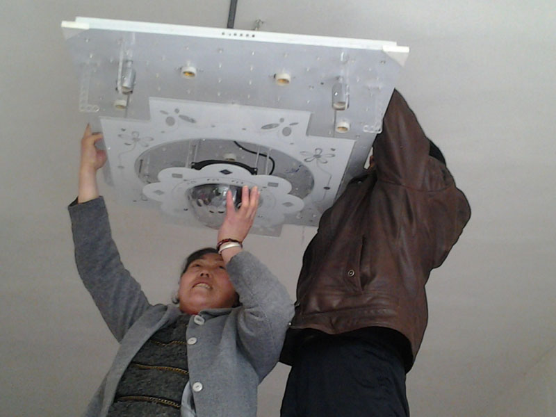 搬家了到了新家一切都要重新装修,我特喜欢客厅里的灯。我们一家三口为了安这个灯可费了一番功夫呢。