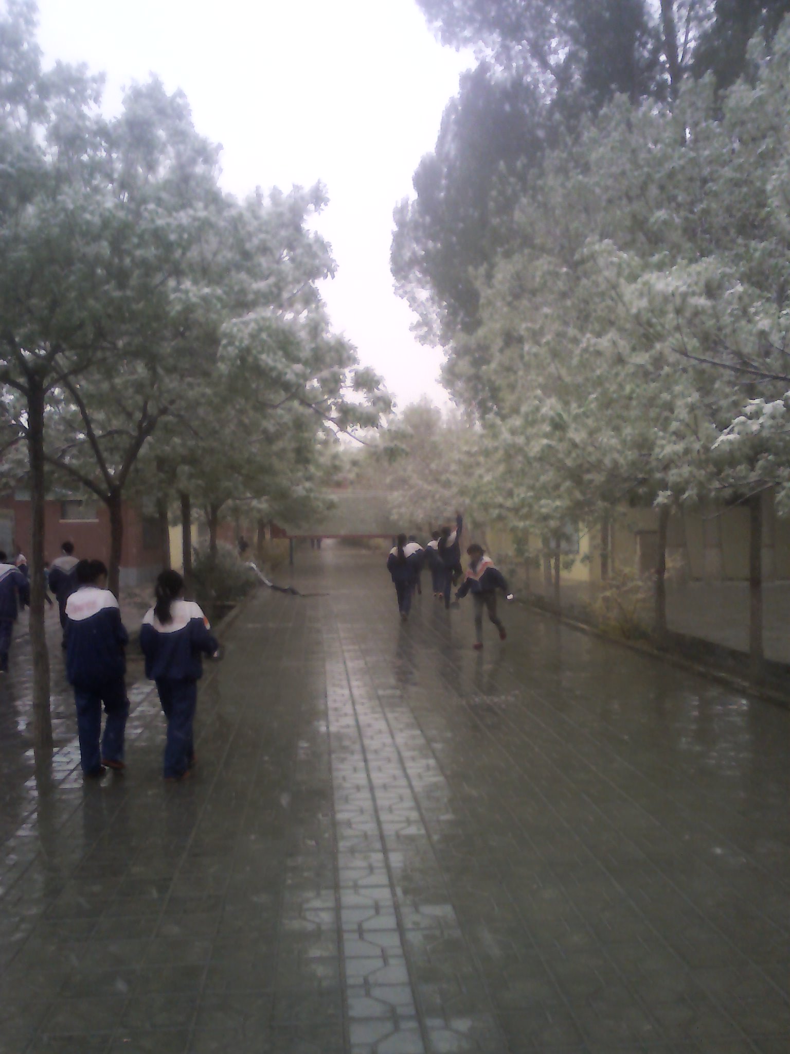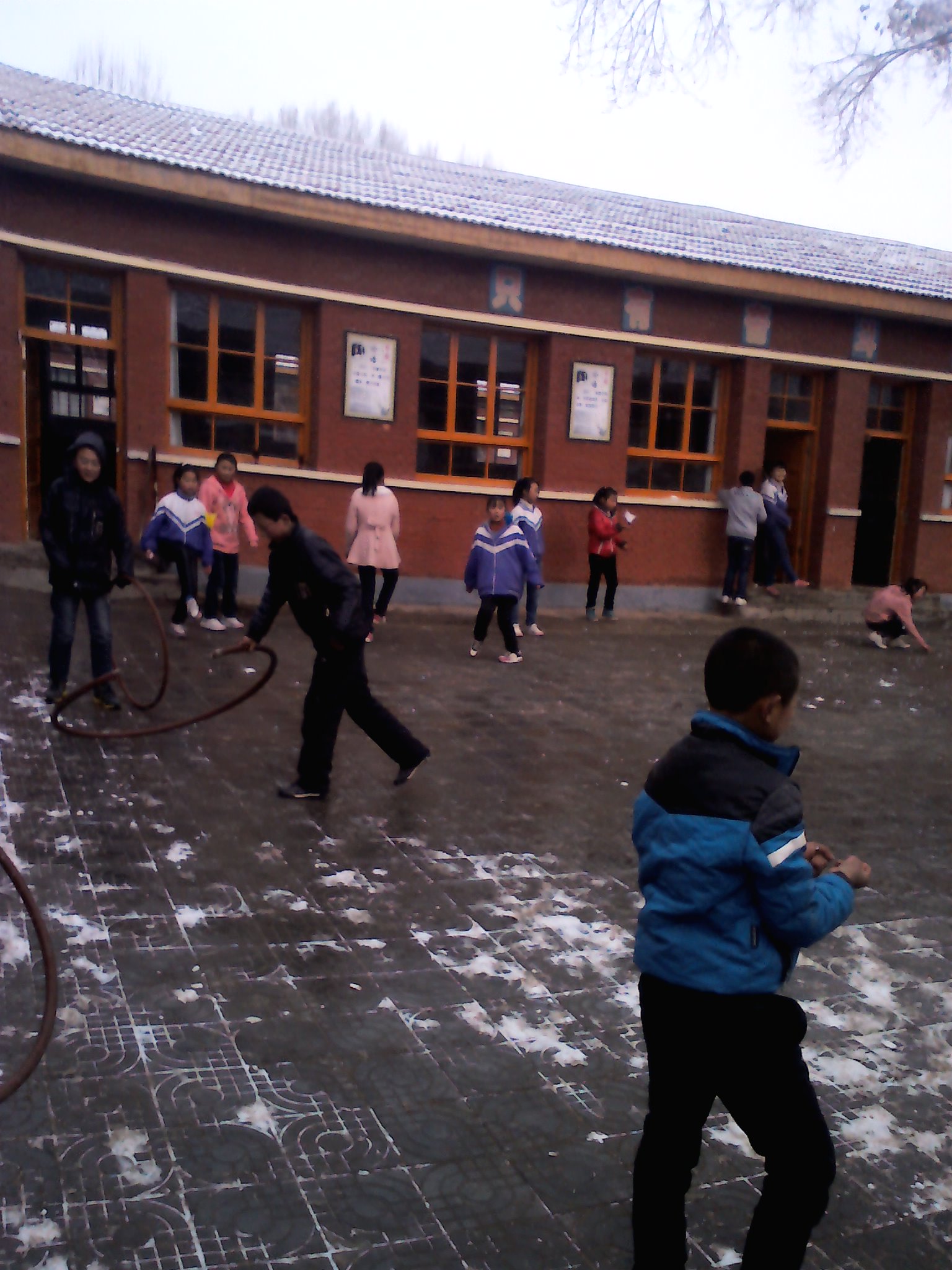 同学们除了在校园里赏雪,寻找雪压花朵的惊喜外,课间活动也开展得热火朝天:跳绳、踢毽子、打羽毛球。以青春的活力驱散了这场突如其来的雨雪带来的寒气。