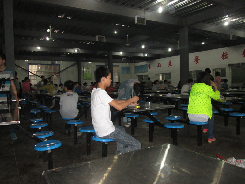 穿过教学楼,左手边是一间餐厅。公分两层,住宿的同学在这里用餐。进入餐厅,便能看见餐厅前有十个大字"当知盘中餐,粒粒皆辛苦"。是啊,农民伯伯用双手中出来的水稻,一粒粒晶莹剔透的白米饭,都是他们辛辛苦苦灌溉而成的。所以我们要珍惜.