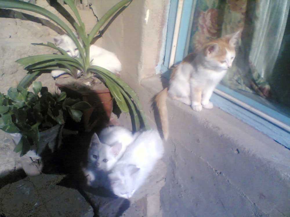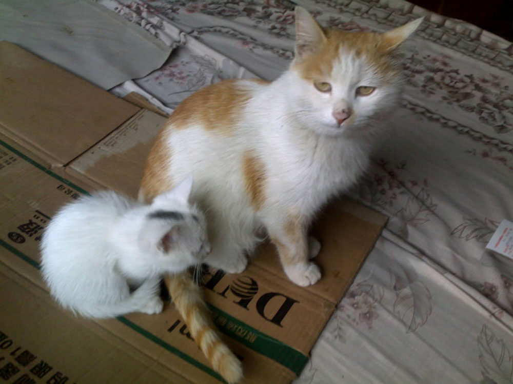 几个月后小猫长大了,五奶奶禁不住邻居的央求,就把四只小猫送给了他们,只留下一直白色的小猫陪在猫妈妈身边,猫妈妈由于失去了四个孩子,所以把所有的爱都倾注在小白猫身上,它不让小白猫离开它一步。