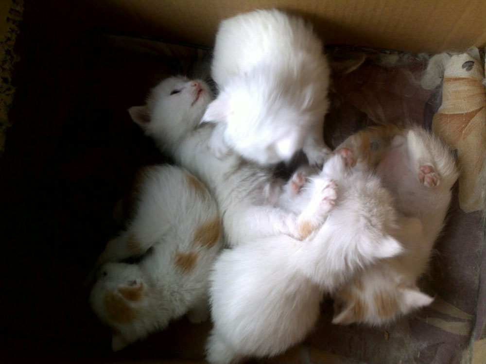 一个星期日的早上,我还没起床,就听得五奶奶喊我,我急忙穿好了衣服,跑到她家,五奶奶兴奋的告诉我那只黄白相间的猫生下了五只小猫。我惊呆了,平时也没发现这只猫怀孕啊,我急忙跑去看,只见五只小猫偎依在妈妈的身边,可爱极了。从此后,我天天一放学就往五奶奶家里跑,这些小猫长得可快了,一天一个样子。