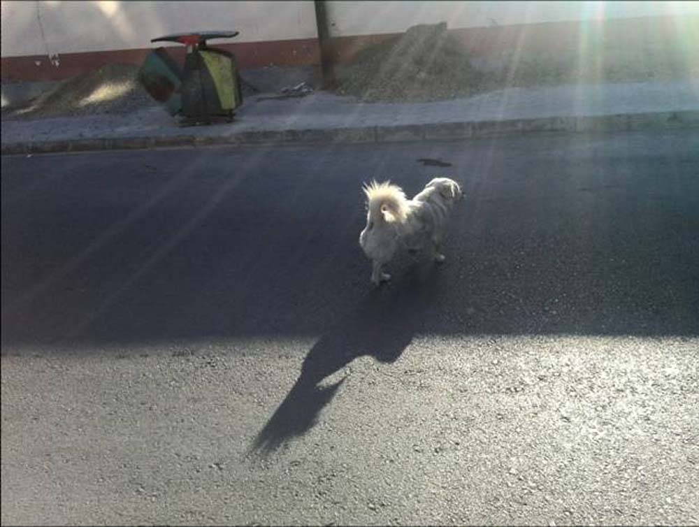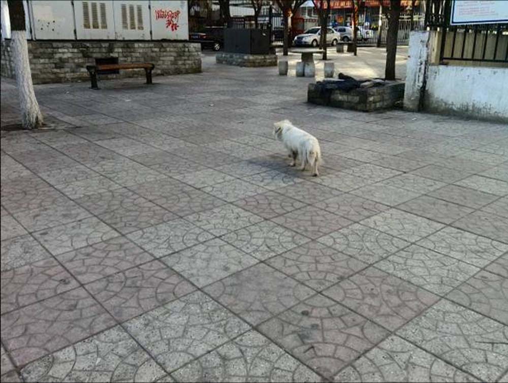这是一只饥饿的流浪狗,它一直在主人的楼下生存着。它想在主人每天扔垃圾袋子的时候见见主人的面,它将主人的垃圾袋子当成了主人为自己准备的饭菜。
