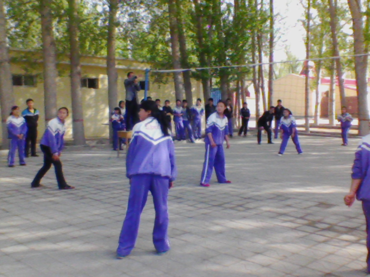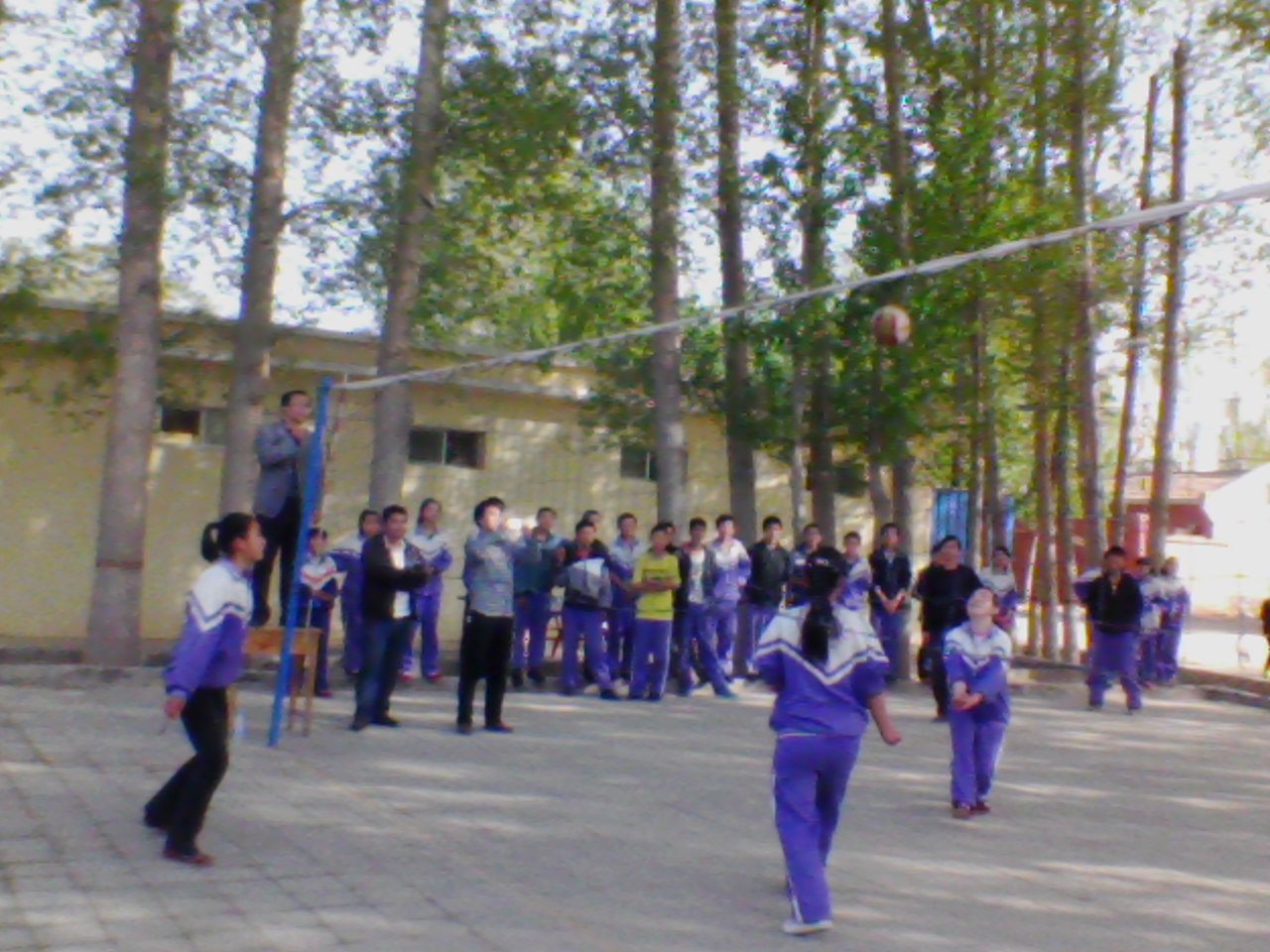 "嘭"一颗颗球在队员们的手中如同获的了生命一样,在双方场地上飞来飞去。可是没过多久,对方就明显占了上风,比分也成了20:16,情况十分危急。眼看我们就要输了,我们的啦啦队员心都提到了嗓子眼,她们大声为我们排球队员呐喊助威:"发球权,夺回来!发球权,夺回来!"我班队员听到啦啦队员的呐喊声,精神一振,提起信心继续迎接比赛。
