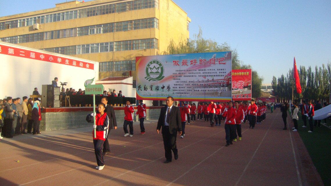 看,高举"做最好的自己"的是民勤实验中学的同学们,这是一个新兴起的完全寄宿制中学,一流的教学设施和和先进的多媒体设备吸引了全县各乡镇的农村学子,他们将在这里尽情地享受高科技带来的方便和快捷,遨游于知识的殿堂。