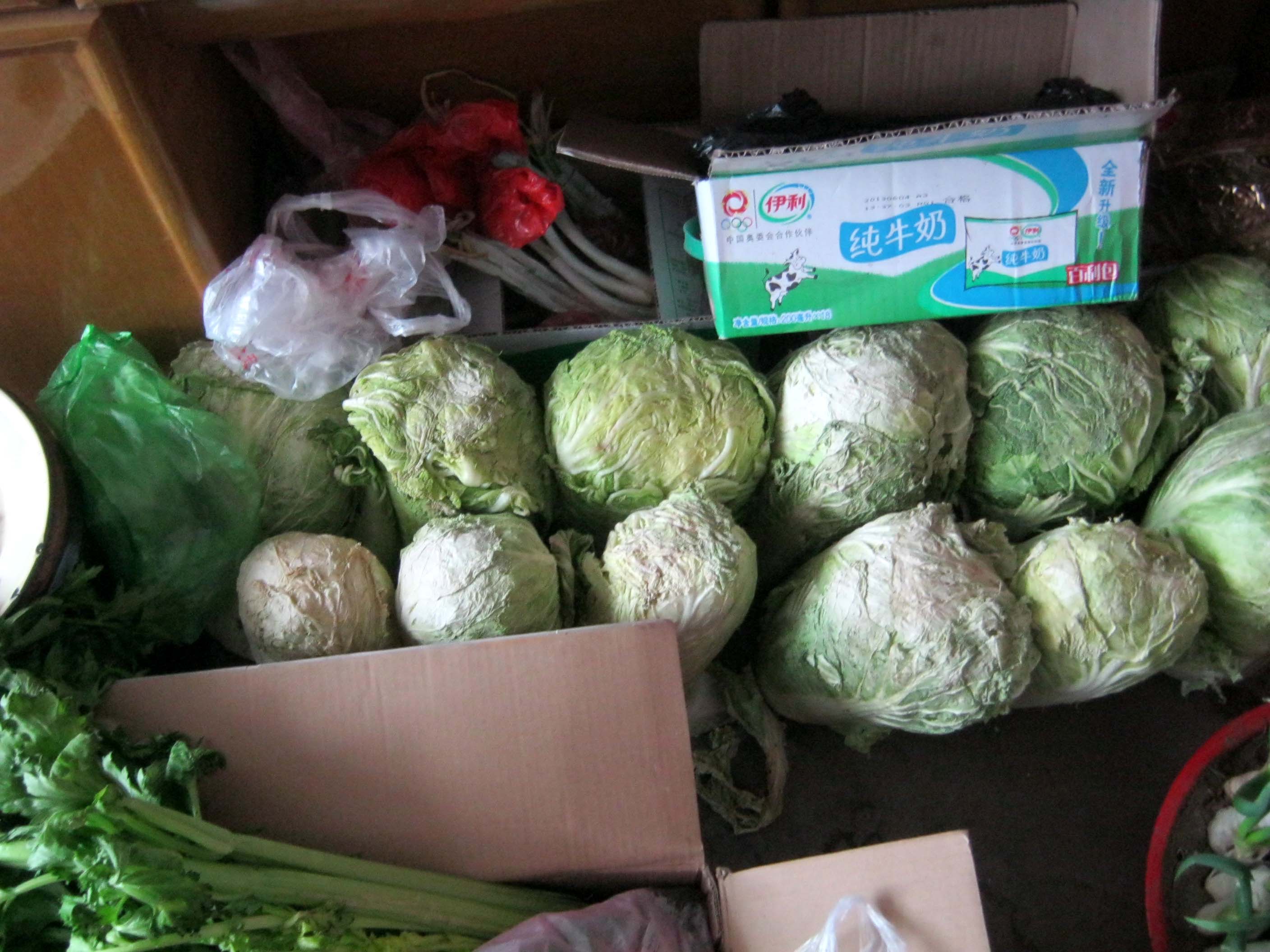 冬天要储存一些蔬菜,放在里屋热,容易烂;放在闲房冷,容易冻。最好的地方就是"堂地",菜冻不了也不容易坏。存放的蔬菜多了,堂地便热闹无比。有时候对面过个人都困难,得跳过去。