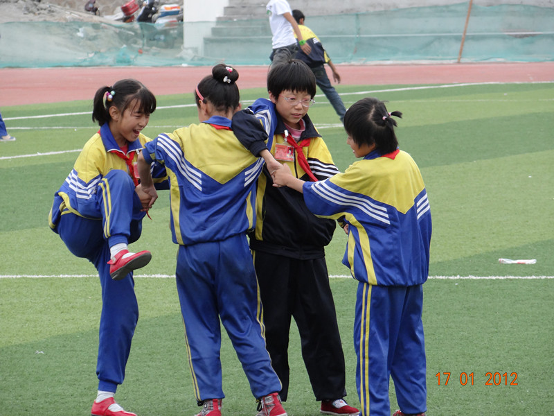 看见是辛启梅和田靓还有马晓燕再叫我,我跑了过去,看见她们用红领巾绑在腿上,一起在练默契,我也想加入可不知他们愿不愿意加我玩,我有些失望,可她们开口了说也过来一起玩吧,我就用我的红领巾把我的腿和别人的腿绑在一起,绑好以后就肩搭肩一起跑,嘴里还喊着加油加油、一二一。过了一会儿我们已经熟练了就打算走楼梯试一试,第一层上了,第二层上去了,到第三层的时候全部摔倒了,经过我们多次联系后终于熟练多了。