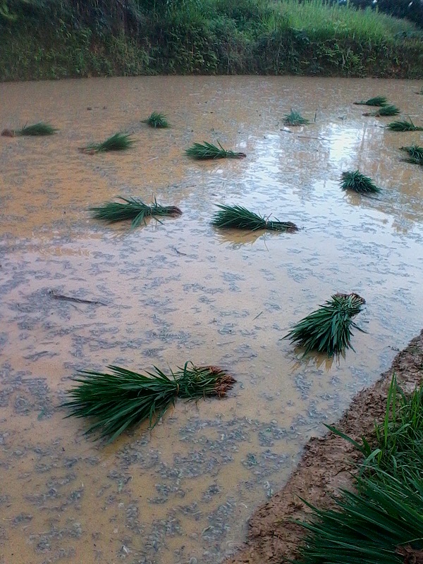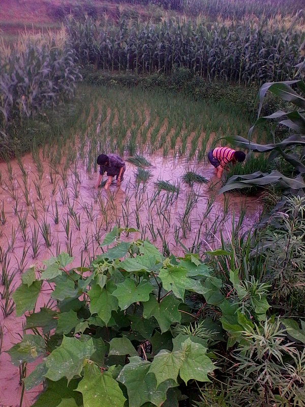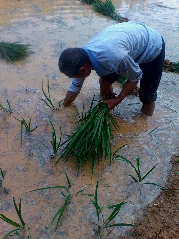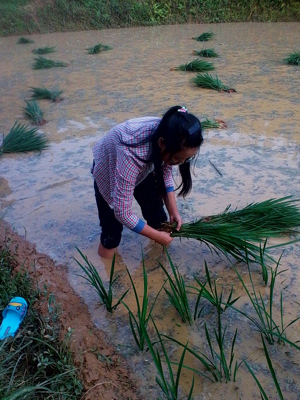 下去后,我先看着爷爷插秧,一小会儿过后 开始自己动手插秧。可是我不是插得太密,就是插得太稀,正准备放弃只是爷爷告诉我:"插秧既要讲究速度,还要讲究质量,插秧急不得,一急就全乱套了,秧苗育秧苗之间的距离太远太密都不行,太远占地儿,太密收成会降低很多。插秧也不能插得太深,否则会死,也不能插得太浅,不然它的根不会伸进土中浮起来。所以当你明白这些道理的时候你就能插好秧,插快秧。"