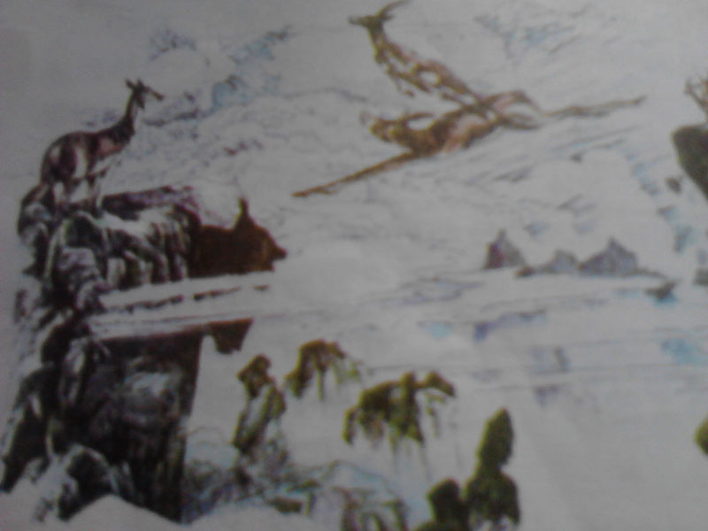 瞧,那一幕幕扣人心弦的场景,那一次次的坠入悬涯,那一个个成功飞渡的羚羊,都无疑是令人震憾的。一切都结束了,一切都沉寂了,只留下那一头斑羚在那,它是谁?它就是镰刀头羊,它甘愿微笑走向彩虹,也不愿成为猎人的盘中餐。