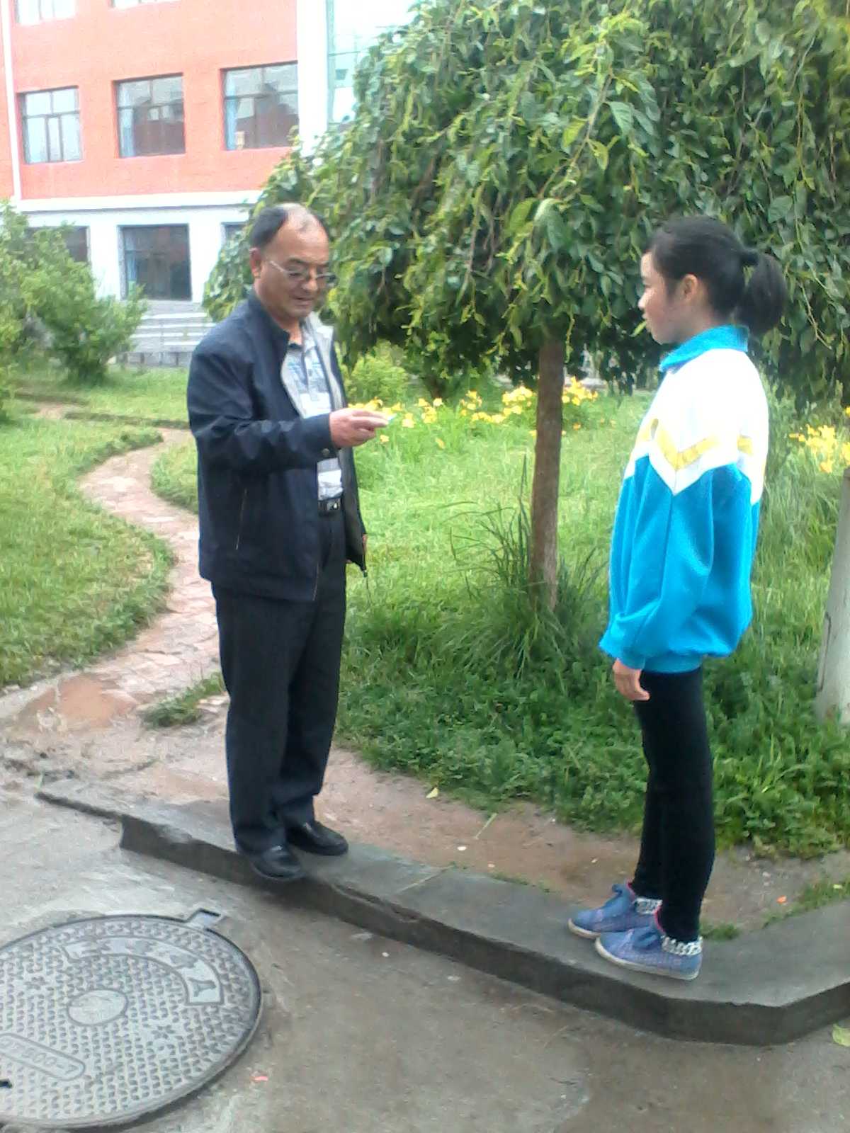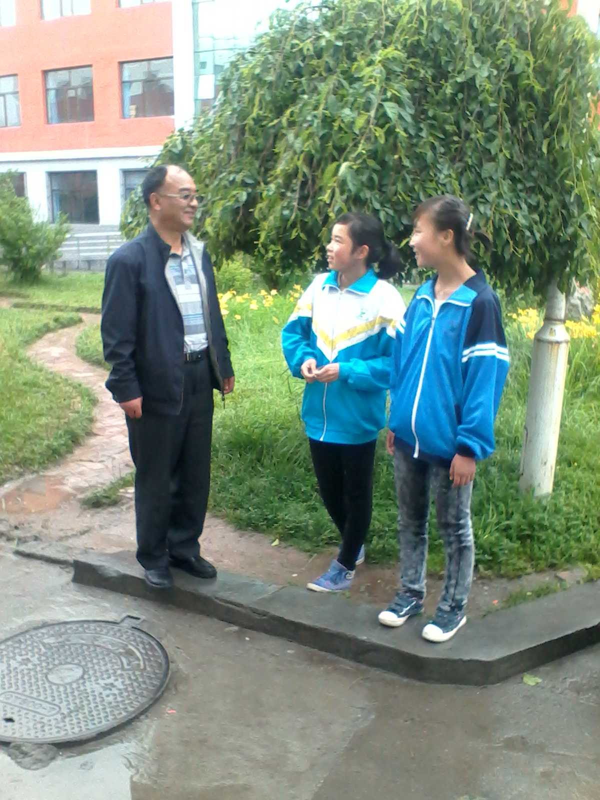 在上体育课的时候,他和我们大家一起做游戏。比如;我们一起跳跳绳,我们一起踢毽子……他和我们在一起的时候就像一个儿童。有一个星期五的下午放假,他不是先回家,而是带我们到树林里玩。我们大家用野花给铁老师做了一个花帽,他高兴的笑了,我们也笑了。