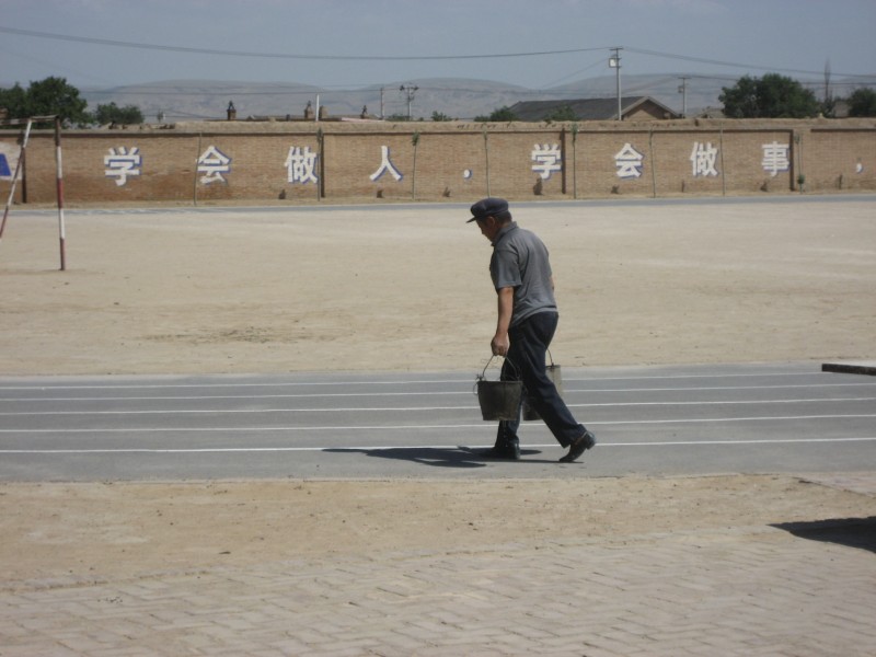 平日里,学校有零散的活,总会见到他忙碌的身影,修理下水道,铺砖,砌墙等,这不最近学校要大搞修理,免不了拆旧墙补新墙,坑坑洼洼的跑道要铺平,他干活很卖力,也很仔细,一点也不比体格健壮的小伙子们差。