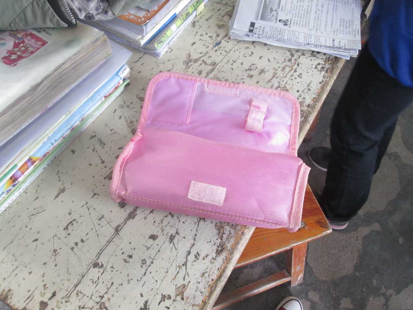 我有一个非常漂亮的铅笔盒,它是粉红色的,这是我开学时台湾花莲奖学金奖给我的奖品,同学们把这种铅笔盒又叫做 "笔袋 "。