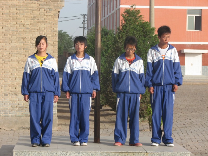 第一项是旗手执旗进入升旗场地,共由四个人组成,每个班轮流升旗一次,他们托着国旗,穿着统一的校服,迈着轻盈的步伐走向旗台,好庄重的场面。