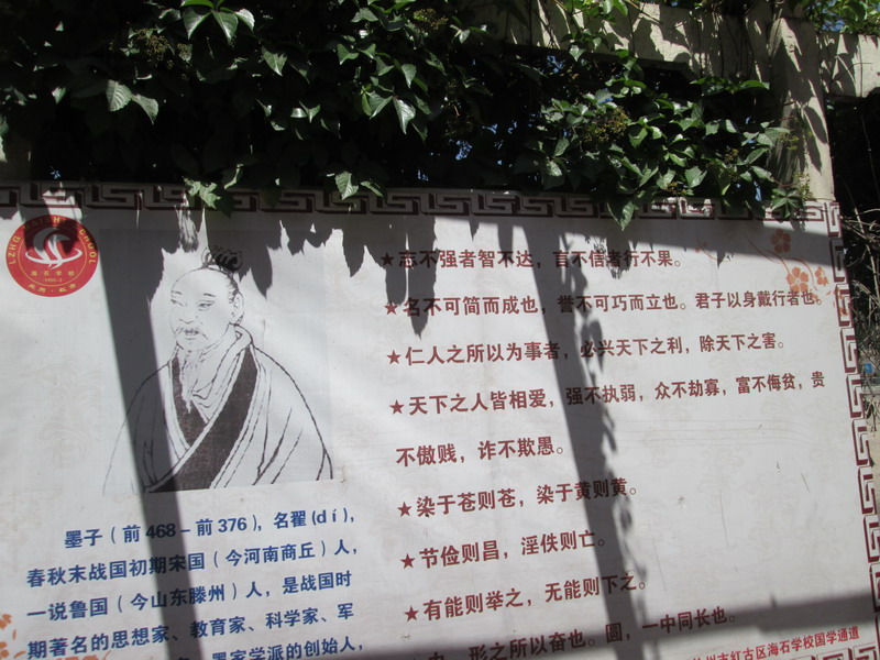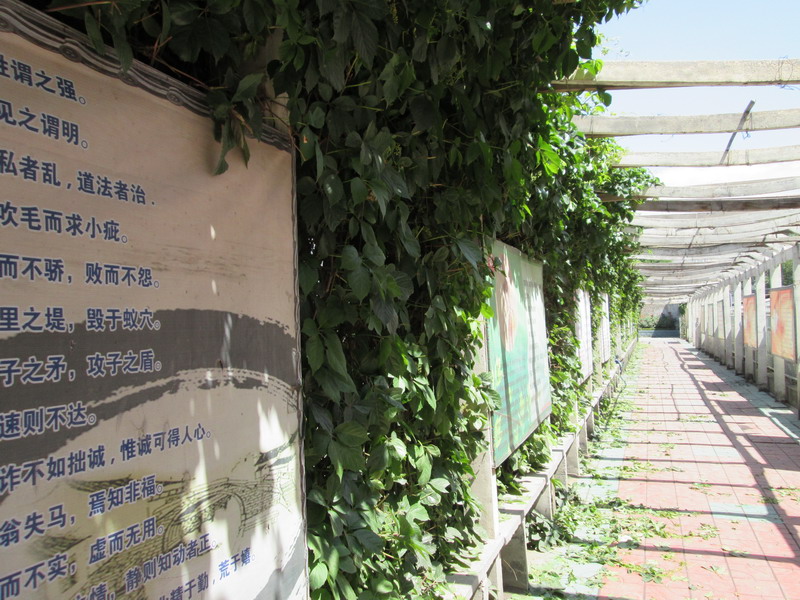 我们学校大约有50米的国学通道,国学内容基本上包含了中小学九年义务教育所涉及到的所有国学内容,如:三字经,弟子规,老子,孔子等。