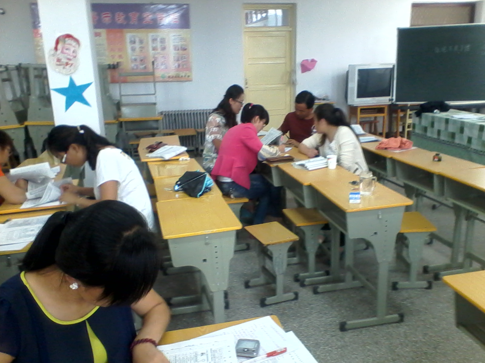 一年一度的学期统考开始了!每学期我们学区都要组织学生统一考试。学区里的每个学校都要参加,监考教师则由学区统一安排,但本校教师不得在本校监考,各个学校的教导主任在规定时间规定地点按时取当天的考试试卷,监考教师必须提前一小时在安排的监考学校签到,任何人不得在考试期间请假。对于较远的偏远学校早上6点就得坐车。夏天还好一些,特别是寒假前的考试,我们在黑夜里就得颠簸在路上。。。。。。考完试在规定地点规定时间统一阅卷,阅卷时各组不得串位,学区主任负责阅卷工作