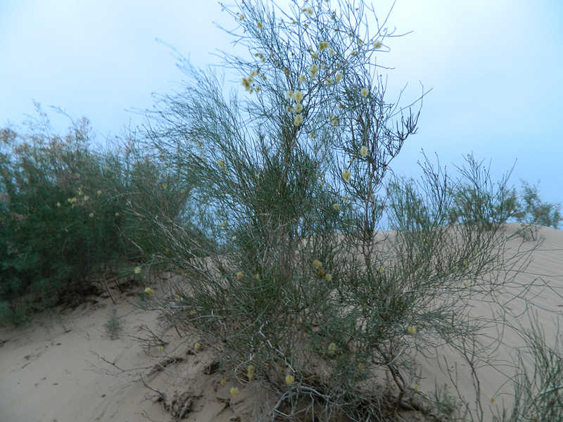 接下来,我要介绍的是酸胖,俗称沙樱桃。它们也盘踞在沙丘之上,可以防风固沙,特别是它的果实在家乡很受青睐,俗称沙樱桃的它,吃起来酸甜可口,还有保健作用。虽是干旱的沙漠中生长,却很有水分,里面仅有一个很小的种子, 还有,酸胖的果实晾干了,还可以熬茶喝,若小孩感冒、咳嗽,喝了酸胖茶会康复的快一些。