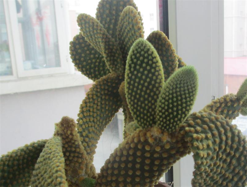 仙人掌是一种绿色的像手掌杆的一种植物。
