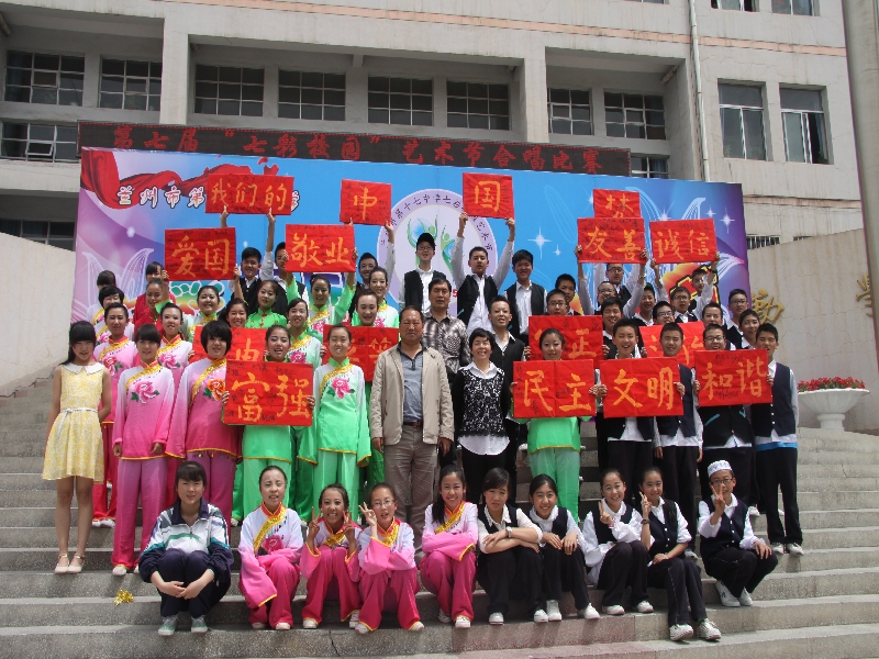 为了此次的演出,我们班可算是倾尽全力。开始是选歌,几位班干部可谓是仔细仔细再仔细,可我们选的歌都被班主任一一否定,可班主任选的歌同学们不喜欢,但我们意见直接遭到班主任的无视,选定了我们听都没听过的《中国娃》。最后在彩排中我们班被直接“刷”了下了,正当同学们灰心丧气时,学校决定让所有班级都参加演出。音乐老师赶紧换歌,经过三天的紧急排练,我们以一首青海花儿《一对鸽子虚空里飞》亮相。