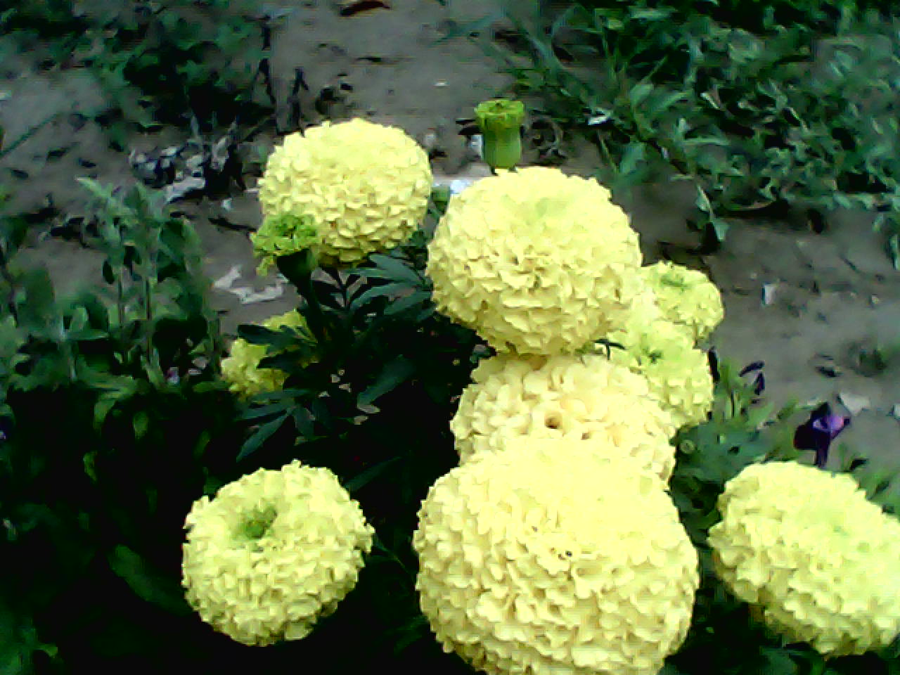 这是馒头菊的神韵:一簇簇花瓣堆在一起,大的像绒球,小的像碧玉,美丽极了。走到跟前还散发着一股诱人的清香,真是令人神情气爽,心旷神怡!