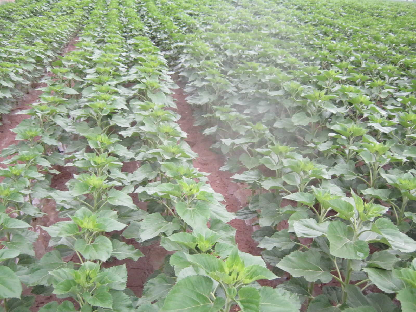 看,这株向日葵已经结上了可爱的花骨朵,再过几天就要开放了;但是突如其来的大雨让它接受了大自然的洗礼!晶莹的雨珠儿在它嫩绿的叶子上徘徊,然后从叶子上滚落下去了。它一定是在调戏着雨珠儿,因为它是一个顽皮的小精灵啊!
