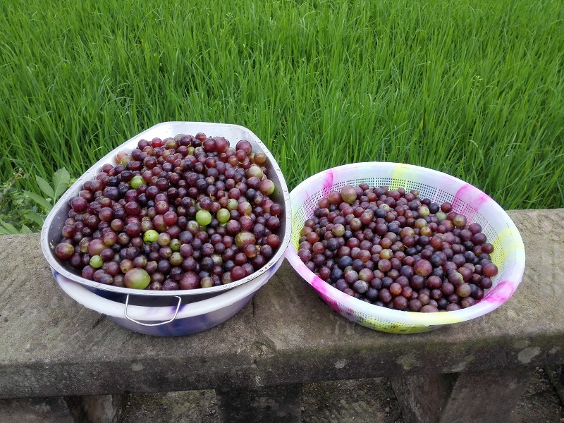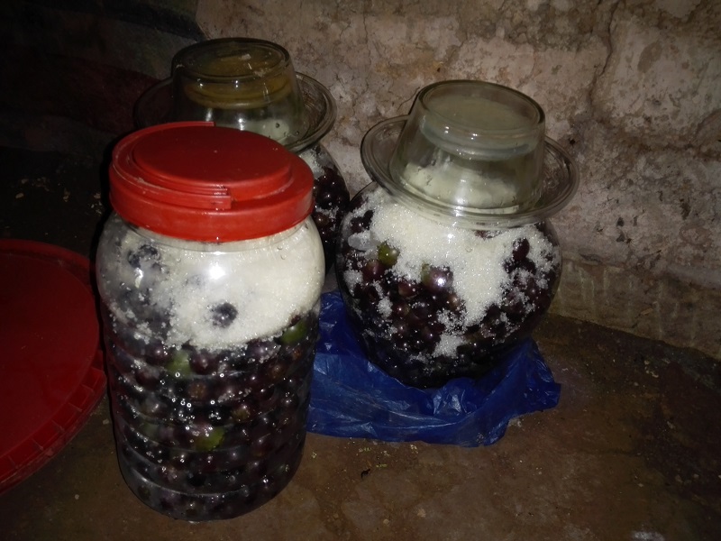 葡萄在坛子里,经过大概两个月的发酵,将葡萄里的糖分转化为葡萄糖和酒精,经过长时间的发酵、密封,葡萄酒就酿成了。最后一道工序便是过滤,就这样自制的葡萄酒就好了。而这种葡萄酒一定是爷爷家逢年过节,招待客人的必备佳品。