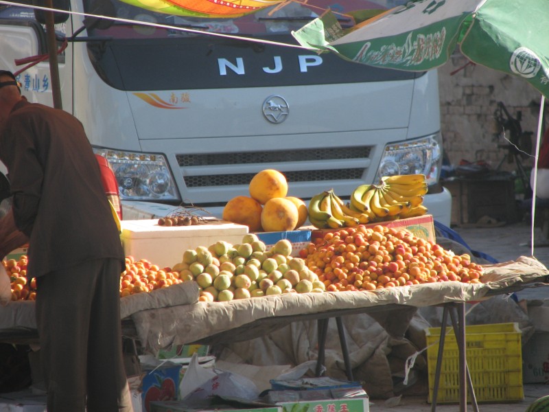一大早,人们就开始忙活起来,车多,人多,道路也变得拥挤了。摩托车修理部,卖蔬菜的、卖瓜果的,卖衣服的,修理自行车的、补鞋子的……大家都在忙着购物,好象大家都知道错过这个集市,下一个集市要等一周才能来临。