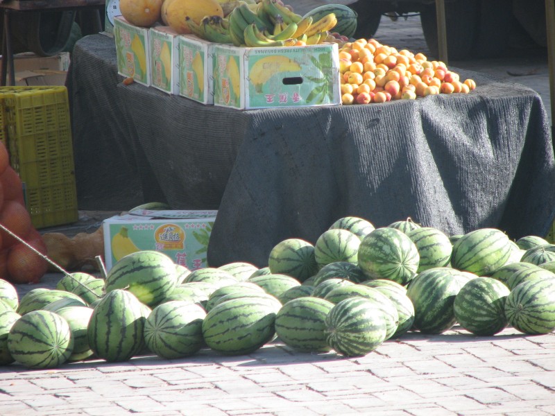 中午时分,太阳很热,饭馆就很热闹了,赶集的人们还是商人匆忙吃上一点,有的就在自己摆的摊儿吃。