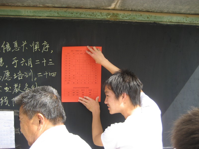 下午时分,红榜贴出来了,好多同学们都在看,或许他们不必要去看,因为已经知道了自己的分数,或许他们想看看自己是不是在榜上公布,真是几家欢喜几家愁,今年学校的高考情况不错,不过无论是金榜题名,还是名落孙山,从这一刻开始,他们都要迈向新的人生旅程。