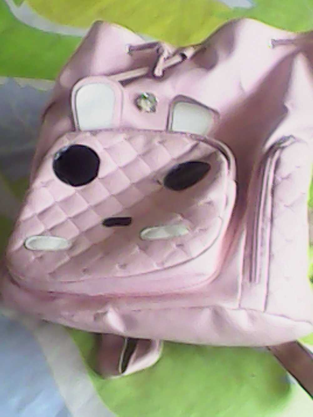 这个书包是单肩的,它上半部分是一种颜色,下半部分是绿颜色,上面白色的小点,上面还有一个娃娃,特别漂亮,后面还有一个装书的,里面有一个最主要的空间,非常大,那就是装书的。