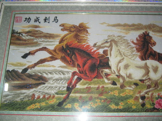 男耕女织是中华民族劳动人民的典范。 妈妈的十字绣更神了。绣出的花栩栩如生,马神采飞扬,精神待发,若在战场上英勇无敌。绣出后装上匾挂在墙上,在我眼中可以和画家的名花相提并论。