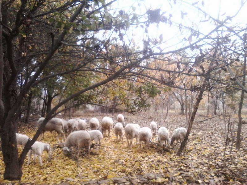 好像我的到来使这片树林突然活跃了起来,我发现,树上还没有脱落的树叶好像在翩翩起舞,终于它们按捺不住心中的喜悦,在一阵风后像飞舞的蝴蝶纷纷飘落。正当我沉浸在这迷人的秋景中时,一放羊的老人赶着一群羊走进了小树林,这些羊在树林中觅食着,显得那么悠闲自在,那么安然自得。我注视着眼前这安闲而幽静的景色,不由想到,大自然这么地美,而如我一样忙碌的人,却很少欣赏到。我又想到,许多人去远方寻找美景,其实,生活中,美丽的景色处处存在。