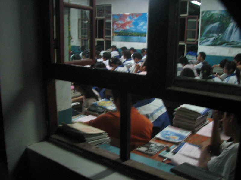 第一晚自习下后有二十分钟的休息时间,大家冲出教室,玩耍,谈论,一副热闹的场面,第二个晚自习是从9:00开始上的,这个晚自习,很多老师们都会进班里辅导,讲解习题,解答疑问。没有老师辅导的班级,同学们继续认真的上晚自习,对外面静静的一切顾不得去看,在六月份的黄土高原上,似乎显得没有活力。