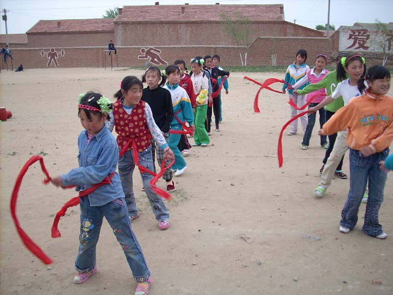 一年一度的六一儿童节就要来临了,同学们都在操场上排练。一群群、一伙伙在老师的指导下练的有模有样。