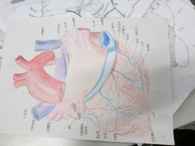 她要把我们画的器官图整理出来,然后选出最好的,在班里评奖呢,然后再把这些图粘到墙上,让每一个来这里的人都能看到。