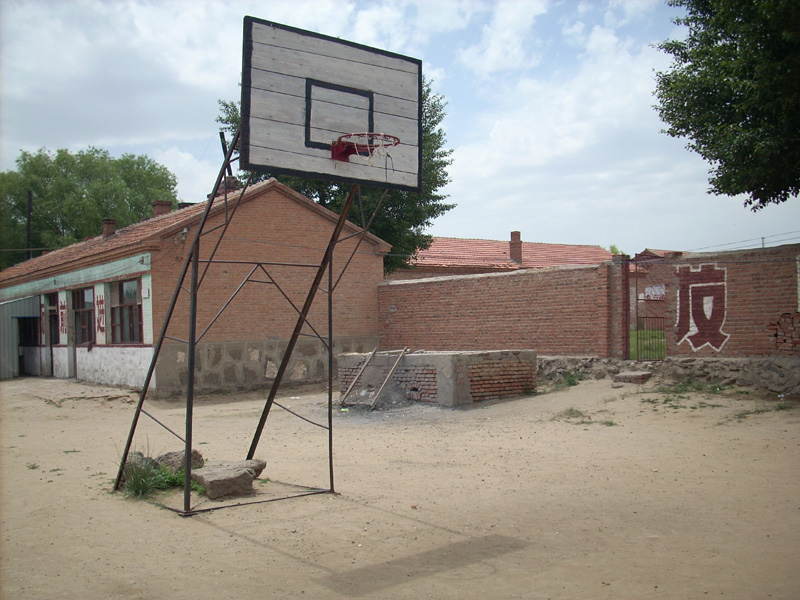 这儿是一个蓝球场,这倒是男生们很乐意去的地方,一到体育课你总能看到几个同学在打蓝球。虽然场地不是很平,球架子也不是很新,但同学们还是玩得津津乐道。