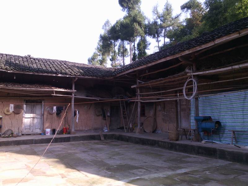 我家的土房是外婆他们造的。造墙的土是从山上挖回来的粘性强的土,黏性强的土造出的墙才牢固。把土筑在一排连起来的篾条圈上,篾条圈相当于现代建筑的钢筋,黏土相当于混凝土。筑墙时,把黏土搁在墙板里,用墙锄子把墙夯实,再抹光,让它自然风干,就成了现在的墙。