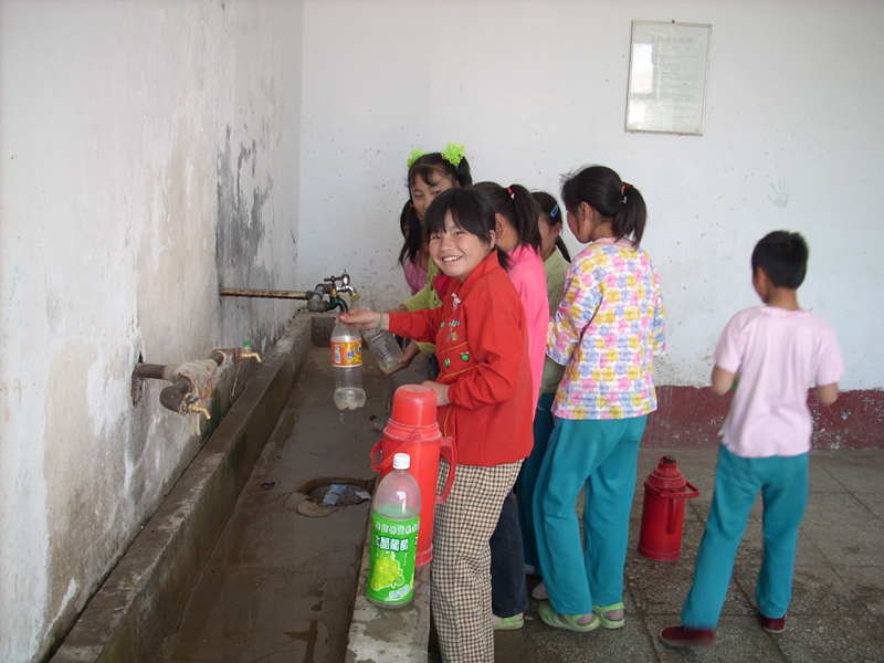 水房里有四个水嘴,两个供开水,两个供冷水。一到吃完饭后就是打水的高峰了。热水分三次供应,早晨、中午和晚上,冷水全天供应。我们打水也有人管着,是个烧锅炉的老人,怕我们挤着让开水烫着。