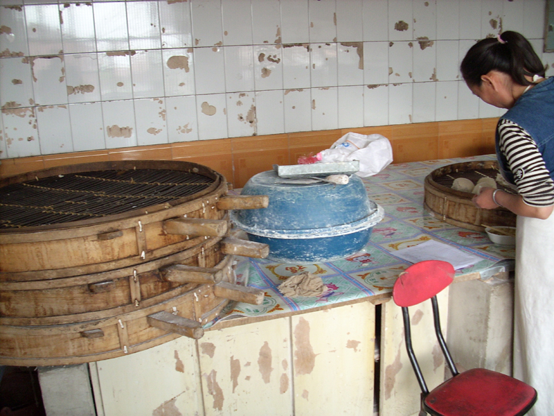 再说我们的伙房,有三间房大小,一日三餐都是从这里做出来的。屋里也算作干净吧,大师傅们每天都要打扫三次的。我们一周的食物大多是馒头,只有一顿米饭和两顿包子。