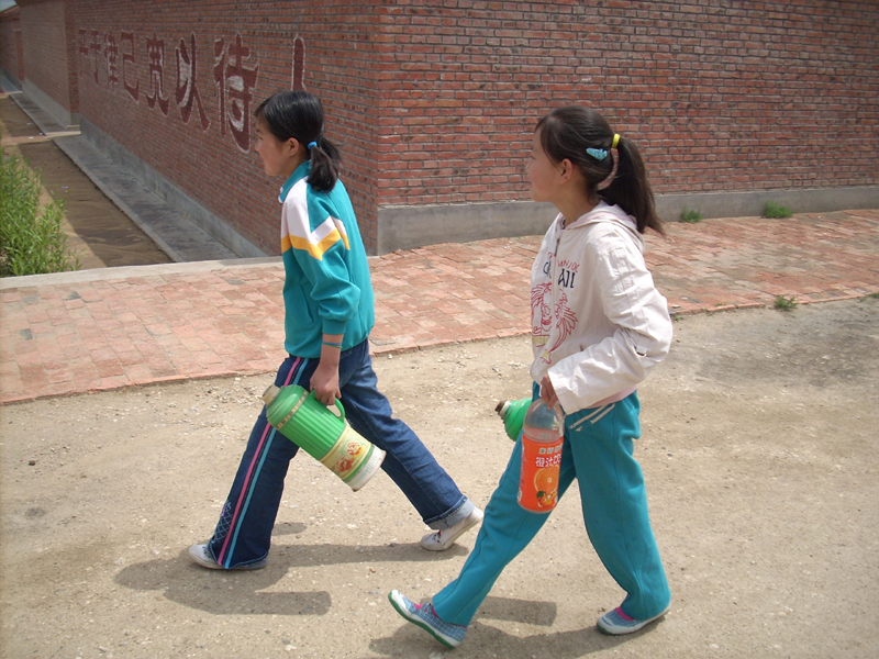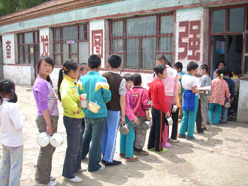 到开饭时间,我们就排起长龙到伙房门前等着,大师傅给我们分饭,一个挨着一个。分完饭我们就找地方吃过,再去水房把餐具洗了。日复一日,年复一年,我们都是这样过来的。不管吃的好与不好,但我们学校的生命线从未罢过工。