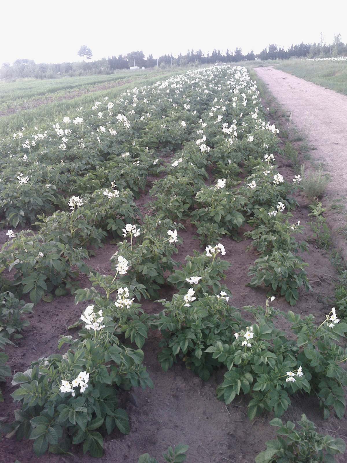 那一片是土豆花,开得正旺。墨绿的土豆蔓,旺盛地支棱着,顶上一朵洁白的小花,把整个土豆地打扮得分外好看。更惊奇的是,你可以去山药地里找圆的小小的"绿珠",晶莹剔透,像个绿色的玻璃球,好玩儿也好看。
