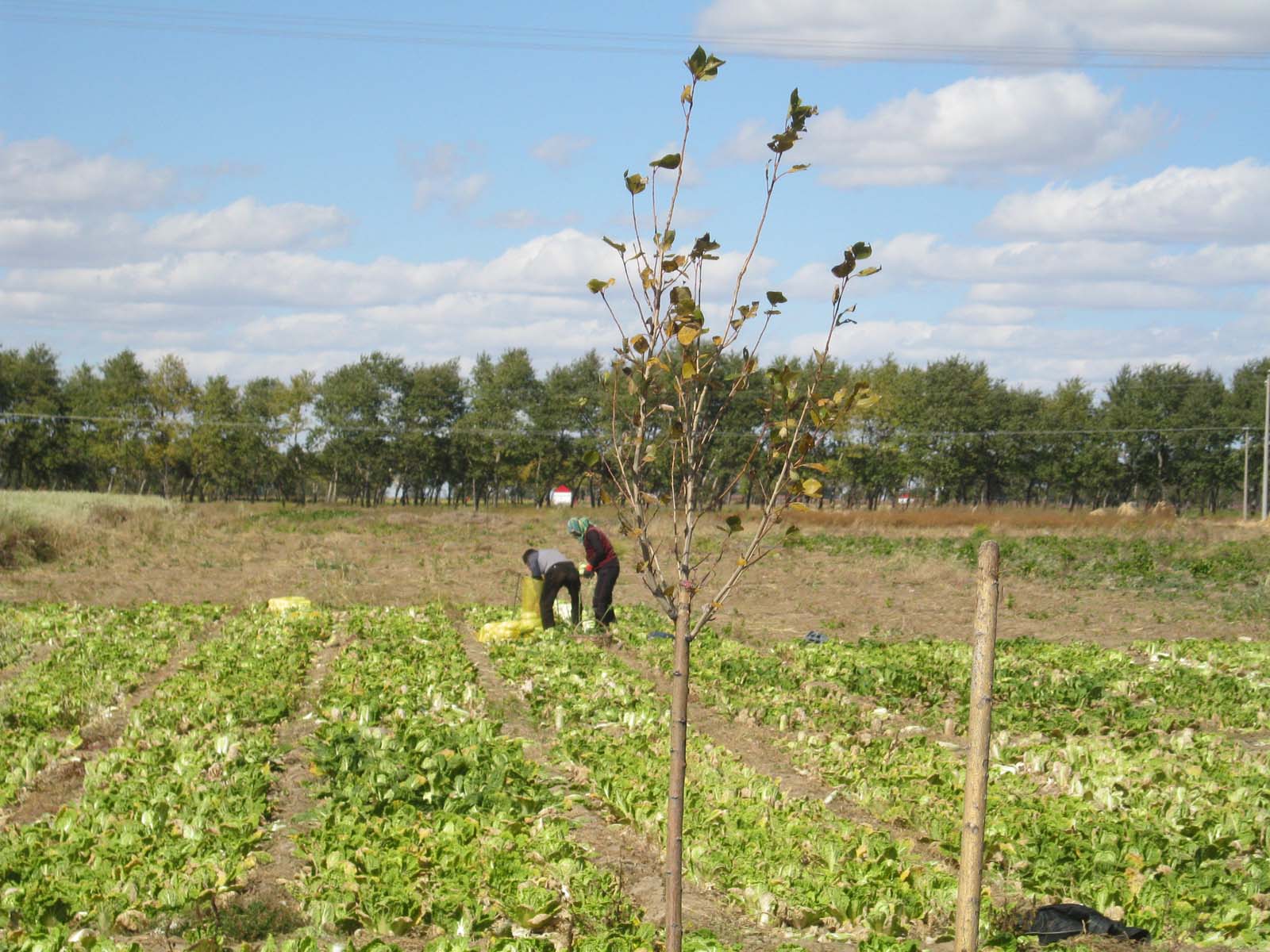 秋天里,地里的庄稼成熟了,麦子黄了,土豆熟了,大片的菜地只剩下狼藉一地的菜叶,羊群在菜地里来回地转圈,寻找吃的。田野里人多了,有的在割麦子,有的在起土豆,还有的在拔萝卜……