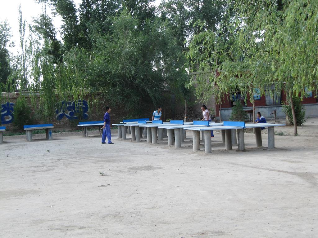 打乒乓球的人就比较少了,不知是人还没到齐,还是其它原因。三三两两来了三四个人,他们拿着球拍,一边分组,一边等人。